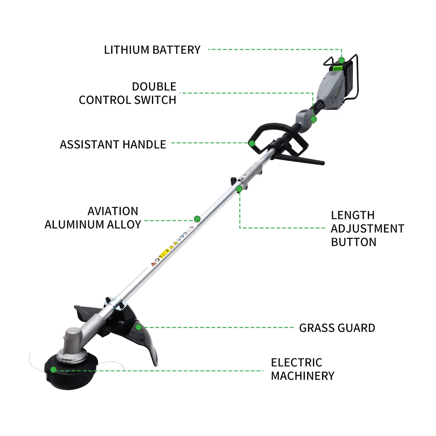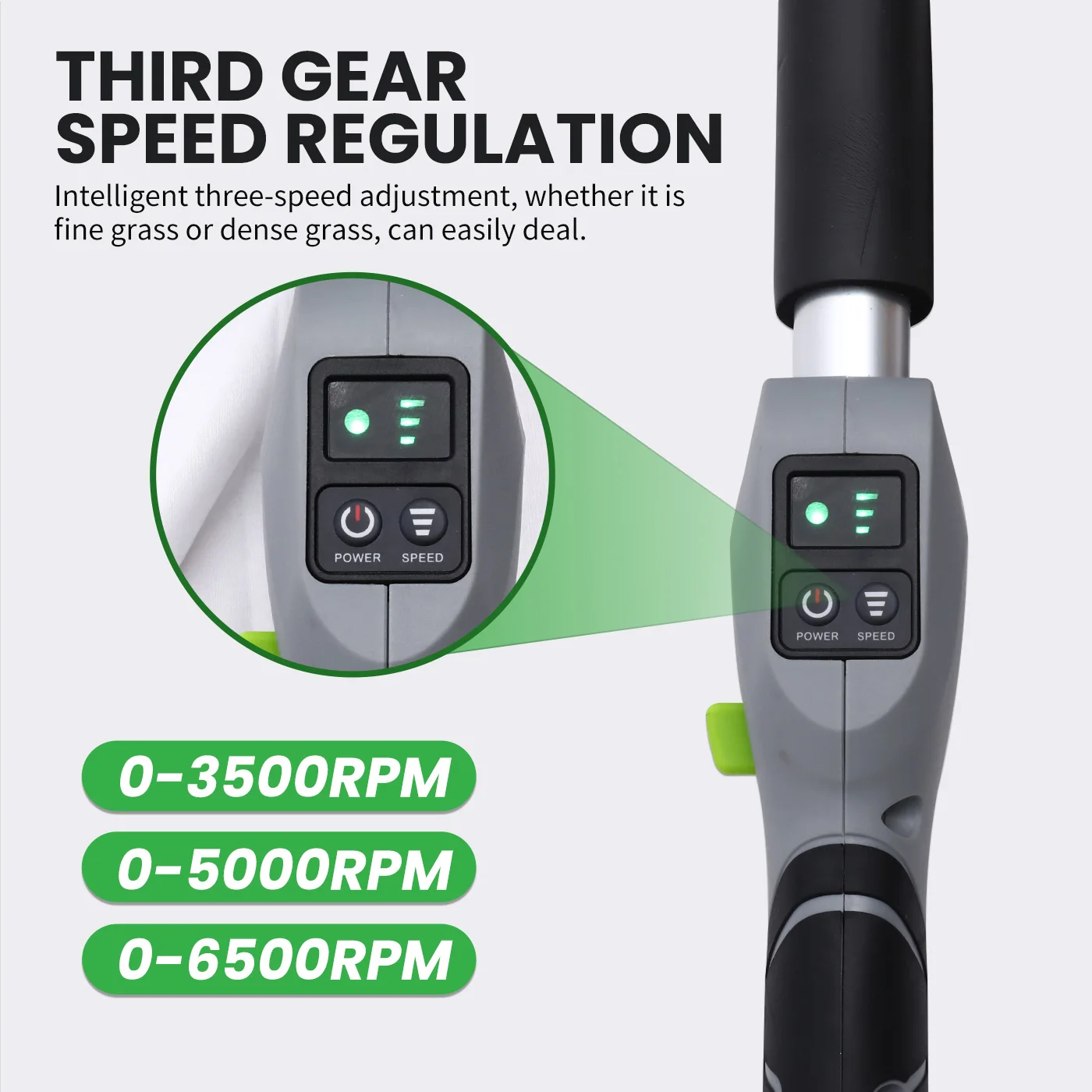 【Brushless Motor, Peak Efficiency】Utilizes industry-leading brushless motor technology with a specially designed external rotor, delivering impressive power comparable to a 32CC fuel engine. Low noise, high efficiency, injecting powerful energy into your mowing tasks while enjoying the convenience and tranquility of technology.