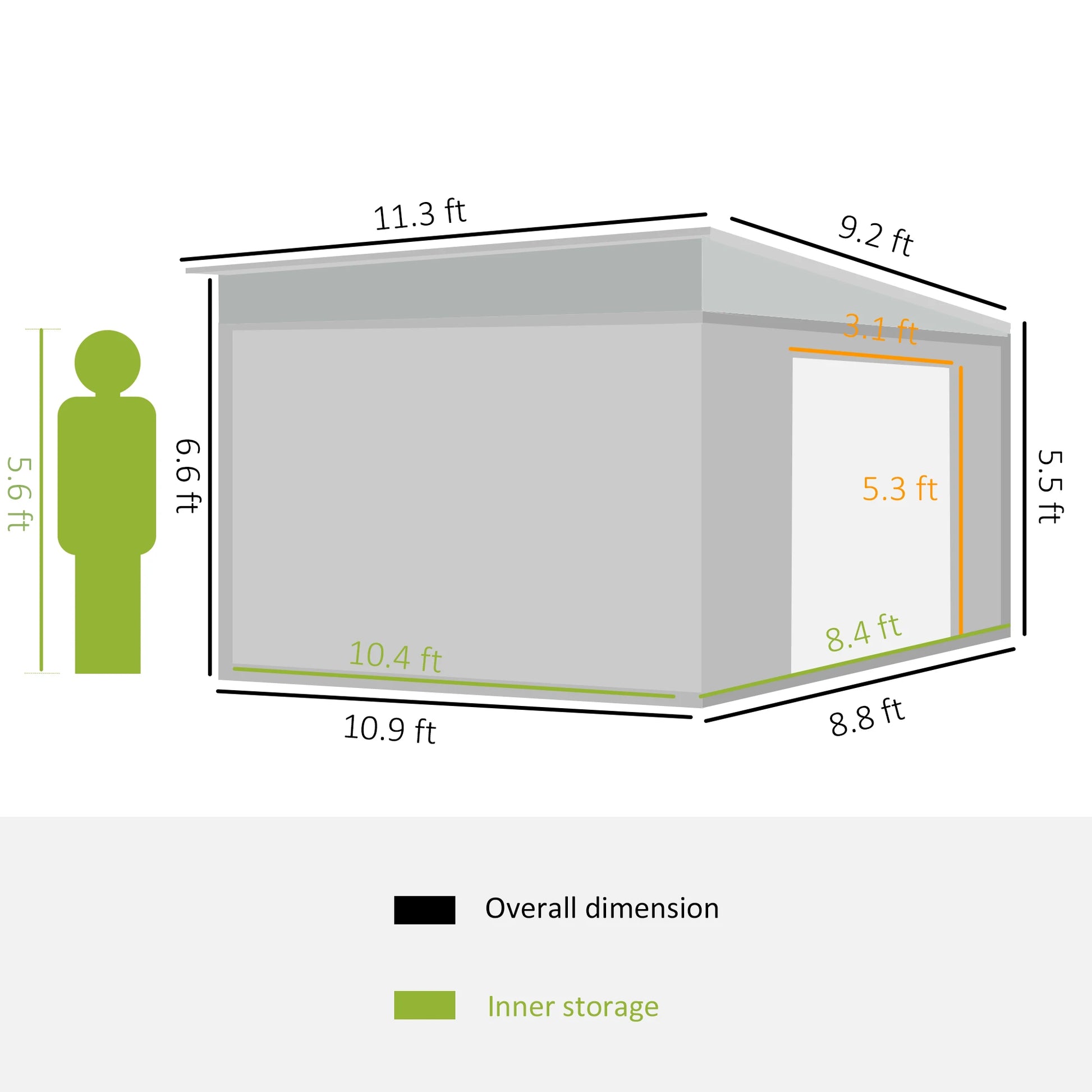 Outsunny introduces the 11x9 ft Metal Outdoor Storage Shed in Gray — a rugged, weatherproof solution designed to protect your tools, equipment, and outdoor essentials from the elements.