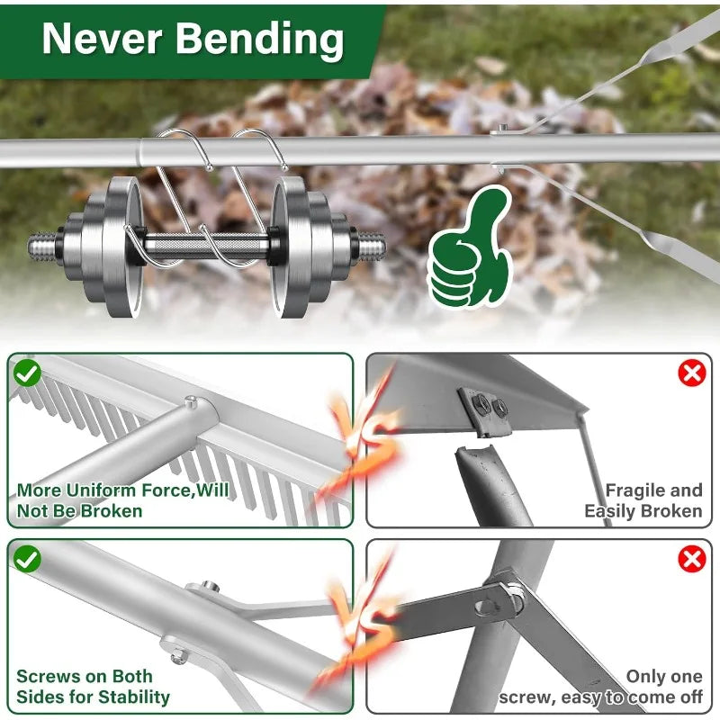 Upgrade your yard tools with the Aluminum Landscape Rake 36" Head 67" Handle and experience reliable performance, effortless maneuverability, and long-lasting durability. Built for US origins and designed to simplify lawn care and landscaping tasks — order today and transform your outdoor maintenance routine.