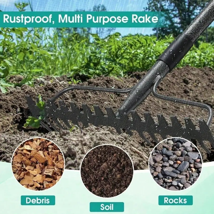 Whether you’re a professional landscaper or a homeowner, this multi-purpose bow rake is ideal for leveling soil, spreading compost, raking leaves, and dethatching lawns. It’s a must-have tool for efficient yard care and garden maintenance.